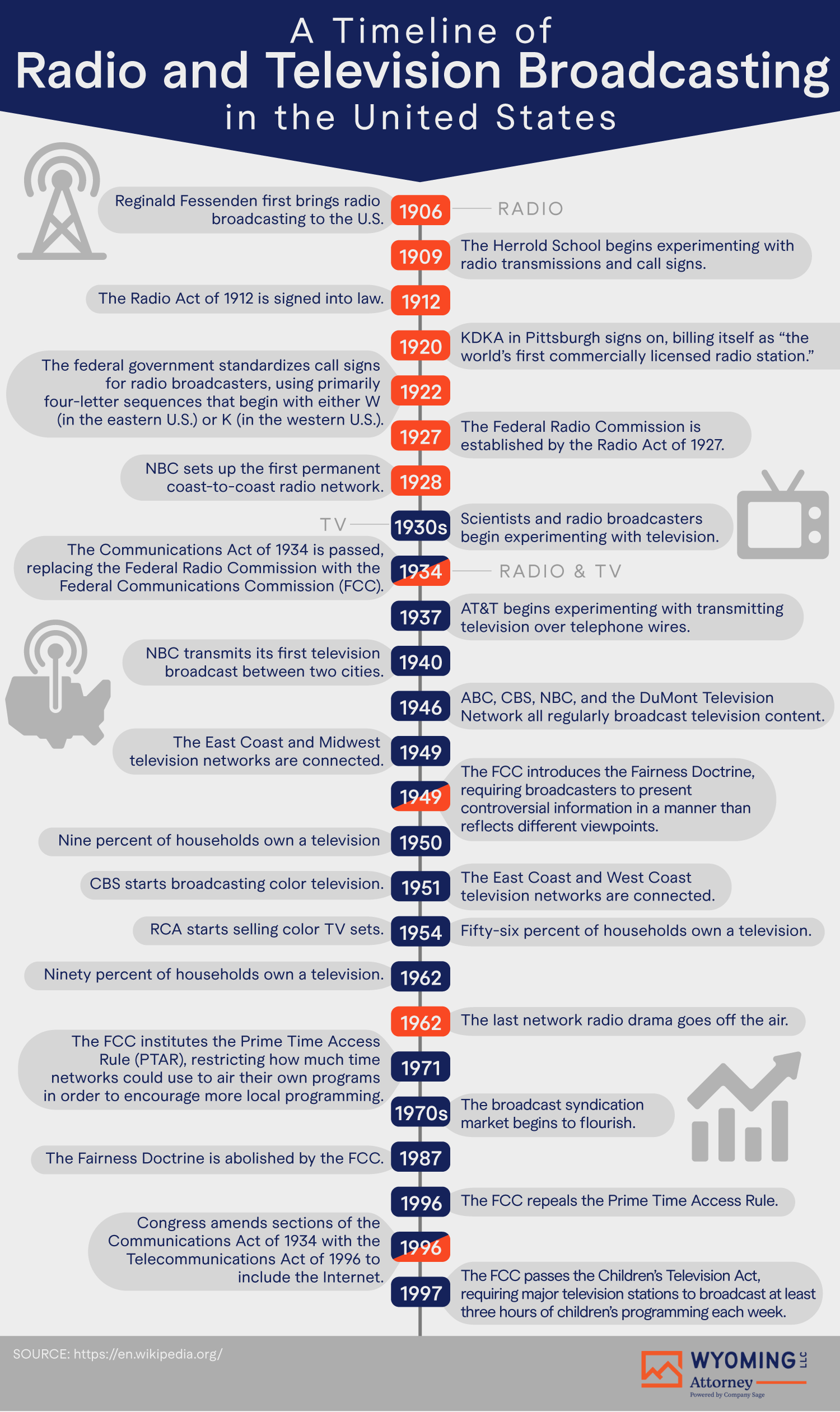 Since stations quickly started accepting paying advertisers, the United States never imposed license fees for radios the way other countries did. The Radio Act of 1927 established the Federal Radio Commision, which a few years later was renamed the Federal Communications Commission, or FCC. The FCC continues to regulate and oversee broadcast stations and the content they air to this day.